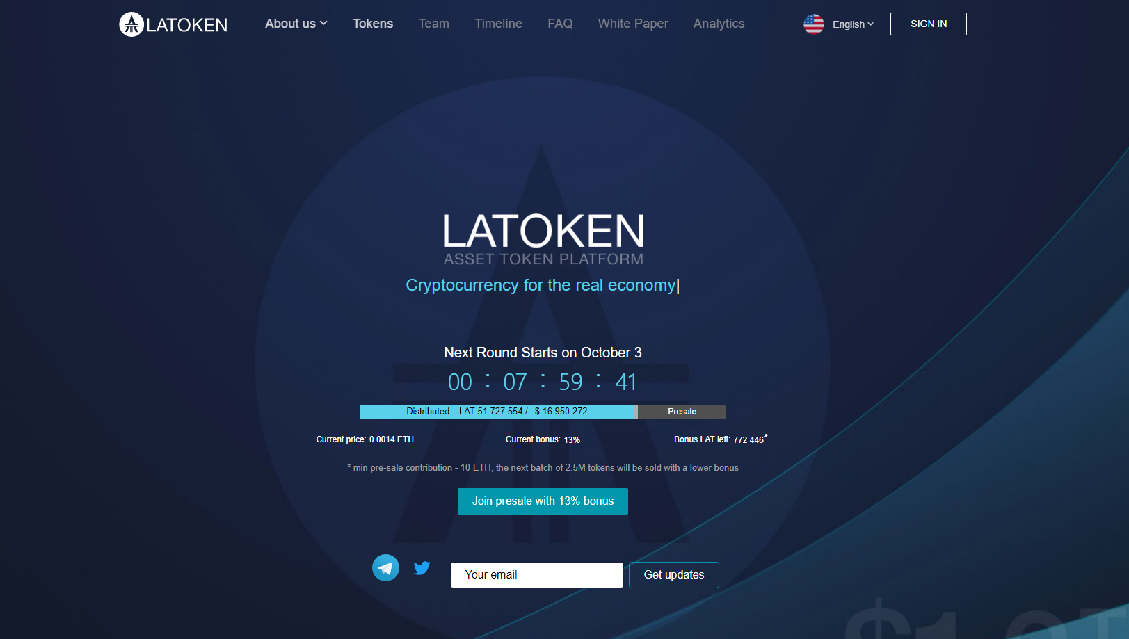 Este proyecto que trae consigo números prometedores comienza hoy su etapa de pre-venta en los activos de su ICO. Oferta inicial de criptomonedas que emitirá 400.000.000 LAT, los cuales se cotizarán con un valor de 1 LAT por 0.0014 ETH.