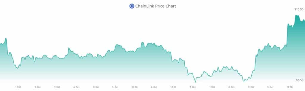 De acuerdo a la información publicada en el blog de BitGo, la idea es aumentar la transparencia y auditabilidad de WBTC, de cara a que aplicaciones de finanzas dscentralizadas (DeFi) reciban pruebas en cadena sobre la garantía respaldada del token. El valor de la criptomoneda de Chainlink, LINK, comenzó a subir desde el 7 al 8 de octubre, alcanzando un pico de 10,40 dólares este viernes.