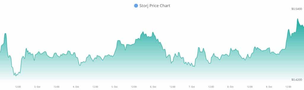 De acuerdo a la información de Storj Labs, como parte de esta nueva oferta, Tardigrade actuará como servidor de origen para la red de distribución de contenido de VideoCoin. Con ello, prometen que los usuarios no enfrentarán penalizaciones por llevar datos hacia y desde la nube centralizada, mientras las empresas ahorrarán 50% en almacenamiento. Desde el 2 de octubre se hizo notorio el avance en la cotización de STORJ. Luego de ligeras correcciones, alcanzó un máximo de USD 0,5281 este 9 de octubre.