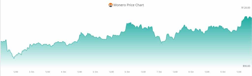 Entre las mejoras que se incorporan con la actualización de Monero se halla la construcción de nuevas firmas de anillo, llamadas CLSAG, que reducirán el tamaño de las transacciones en 25%, y acelerarán las verificaciones en 10%. Estas firmas de anillo tienen soporte en el nuevo código Oxygen Orion. Entre tanto, el precio de la criptomoneda inició la semana en USD 101, alcanzando un máximo de USD 116,6 este 9 de octubre.