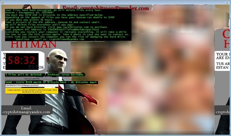 CryptoHitman, como ha sido bautizado, aparece con la imagen del icónico personaje calvo y vestido de traje, además trae consigo imágenes pornográficas como fondo de la ventana de diálogo y agrega la extensión .porno a todos los archivos encriptados. Algo que hasta ahora no se había presentado en los virus ransomware.